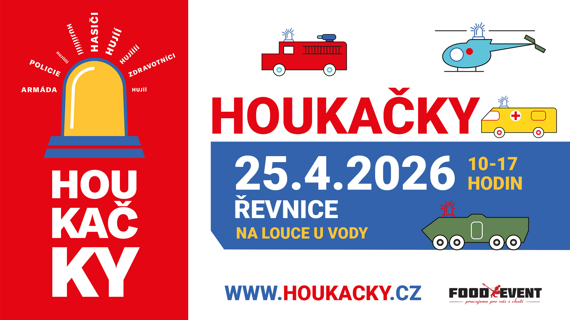 Houkačky už přijíždějí a přivezou den plný zábavy, adrenalinu a úžasné záchranářské techniky. Houkačky jsou preventivní, edukativní a zábavný festival, který představí práci hasičů, zdravotníků, policistů, vojáků, lesníků a vodohospodářů. Za účasti nízkoprahových organizací a neziskovek poukazuje na důležitá témata, týkající se dětí a rodičů.