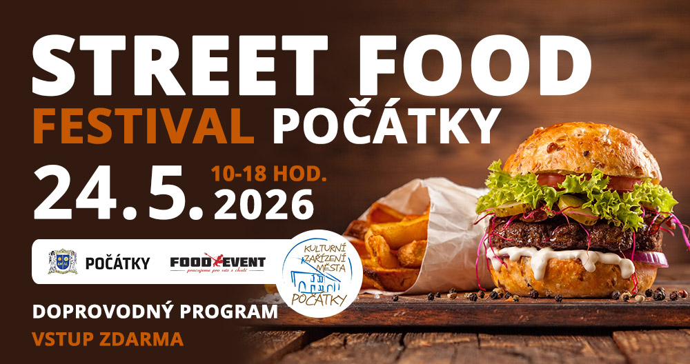 V neděli 24. května 2026 vás zveme na 2. ročník 🍴 STREET FOOD FESTIVALU Počátky, který se uskuteční na Palackého náměstí. Přijďte ochutnat světové chutě, užít si pohodovou atmosféru a zábavu pro celou rodinu!